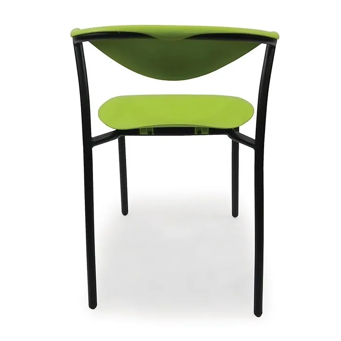Concha plástica ecológica, asiento tapizado básico, raqueta en tríplex de 15mm enchapada con formica genérica y bordes en madecanto. Recubrimiento electrostático epoxi poliéster resistente a la corrosión.